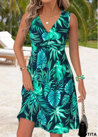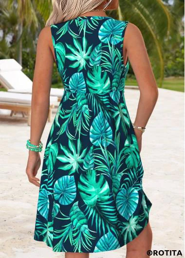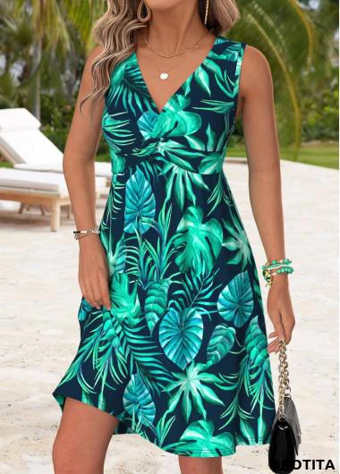 Home > Dresses/ ROTITA Tummy Coverage Leaf Print Multi Color V Neck Dress