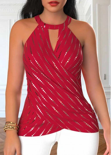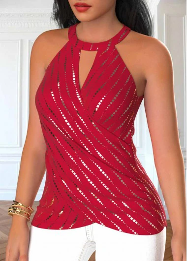 Function:Tummy Coverage Selling Point:Wrap,Cut Out,Button,Sparkling/Shiny,Cross Hem Package Contents:1 X Tank Top Color:Red Printing Design:Geometric,Striped, Print Placement Will Vary Clothing Length:Tunic Sleeve's Length:Sleeveless Neckline:Halter Placket Style:Pull On/Pullover Style:Casual Occasion:Everyday Composition:97% Polyester 3% Spandex Washing Instructions:Hand Wash/Machine Wash