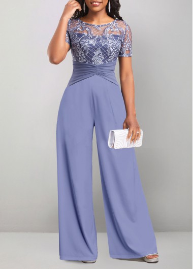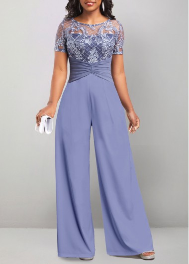 ROTITA Lace Dusty Blue Long Round Neck JumpsuitEach new customer can only get one product at New User Price.