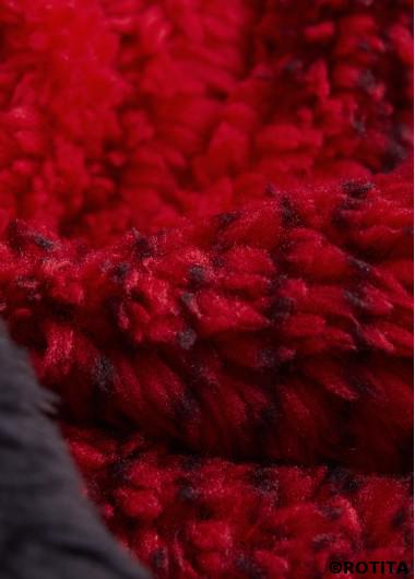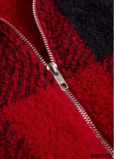 ROTITA Plush Plaid Wine Red Stand Collar Sleeveless Waistcoat