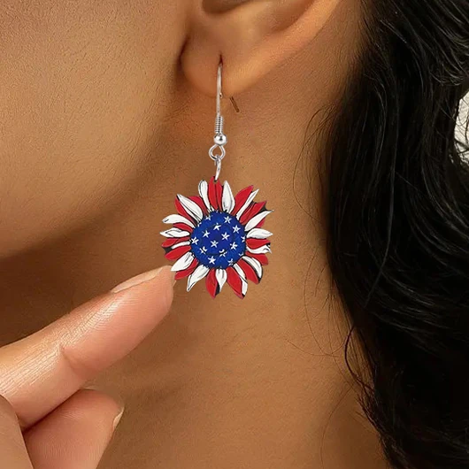 Home > Jewelry > Earrings/ American Flag Sunflower Red Plastic Earrings