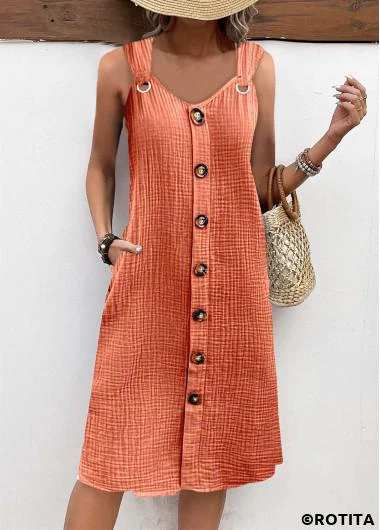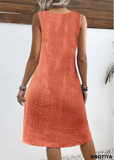 Home > Dresses/ ROTITA Plus Size Tummy Coverage Orange A Line Sleeveless Dress