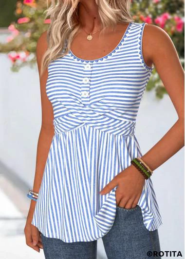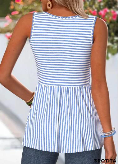 Home > Tops > Tank Tops & Camis/ ROTITA Corset Striped Blue Round Neck Sleeveless Tank Top