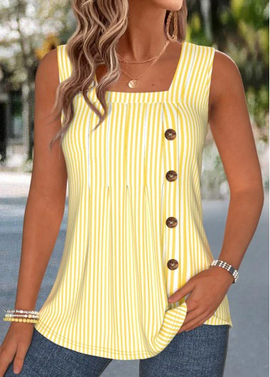Home > Tops > Tank Tops & Camis/ ROTITA Curved Hem Striped Yellow Square Neck Sleeveless Tank Top