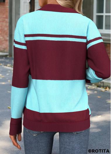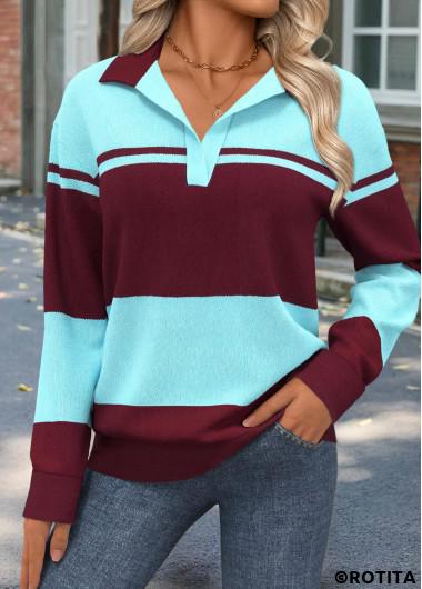 Home > Tops > Sweatshirts&Hoodies/ ROTITA Geometric Print Wine Red Turn Down Collar Sweatshirt
