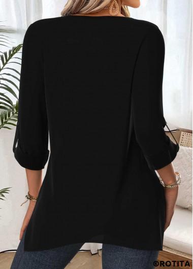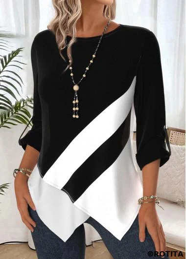 Home > Tops > Blouses/ ROTITA Tummy Coverage Geometric Print Black Round Neck Blouse