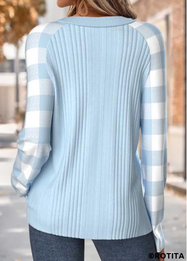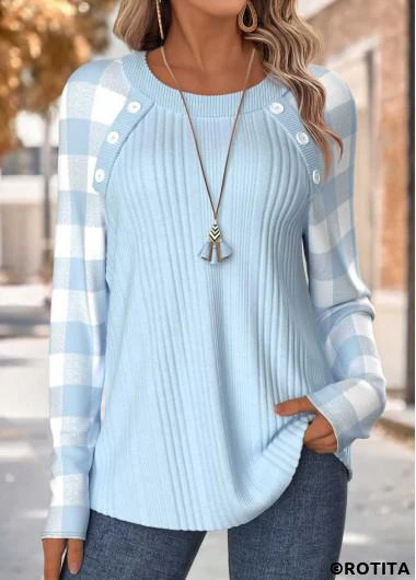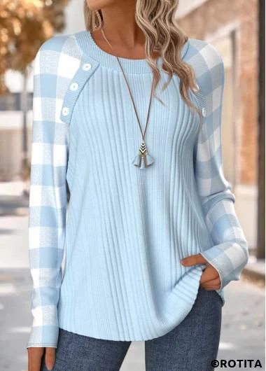 Home > Tops > Tees&T-shirts/ ROTITA Tummy Coverage Plaid Light Blue Round Neck T Shirt