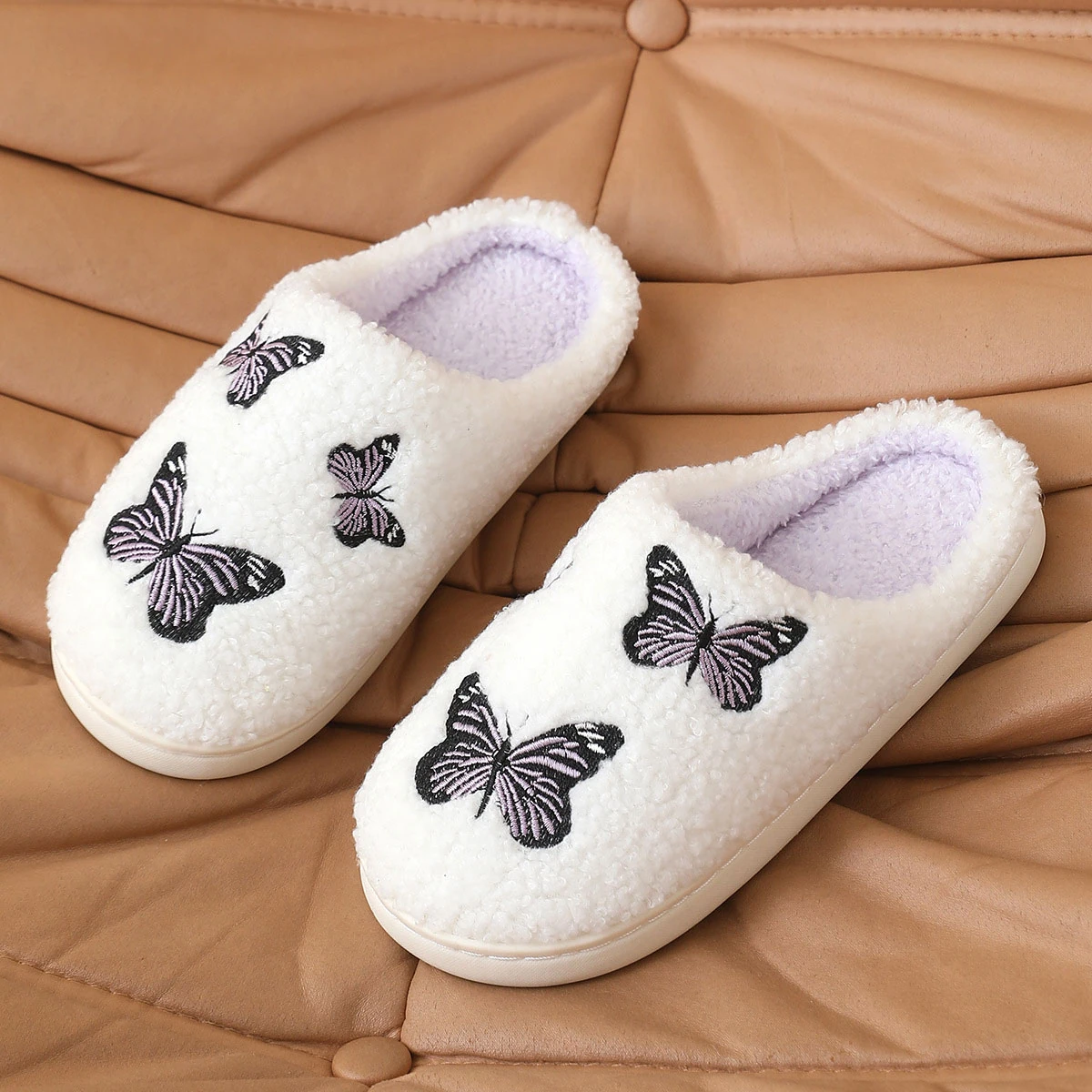 Home > Shoes > Flip Flops/ Butterfly Print White Falt Closed Toe Slippers