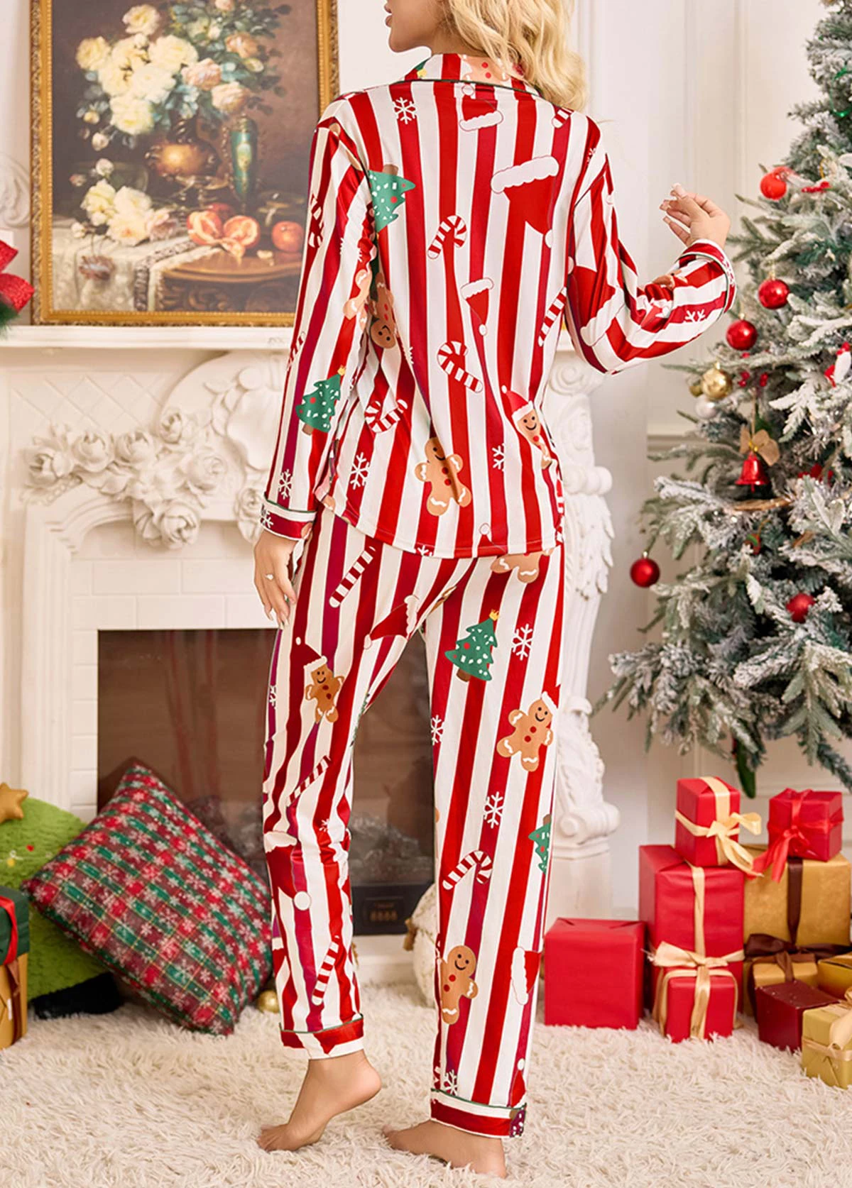 New In Christmas Red Turn Down Collar Lounge Top and Pants