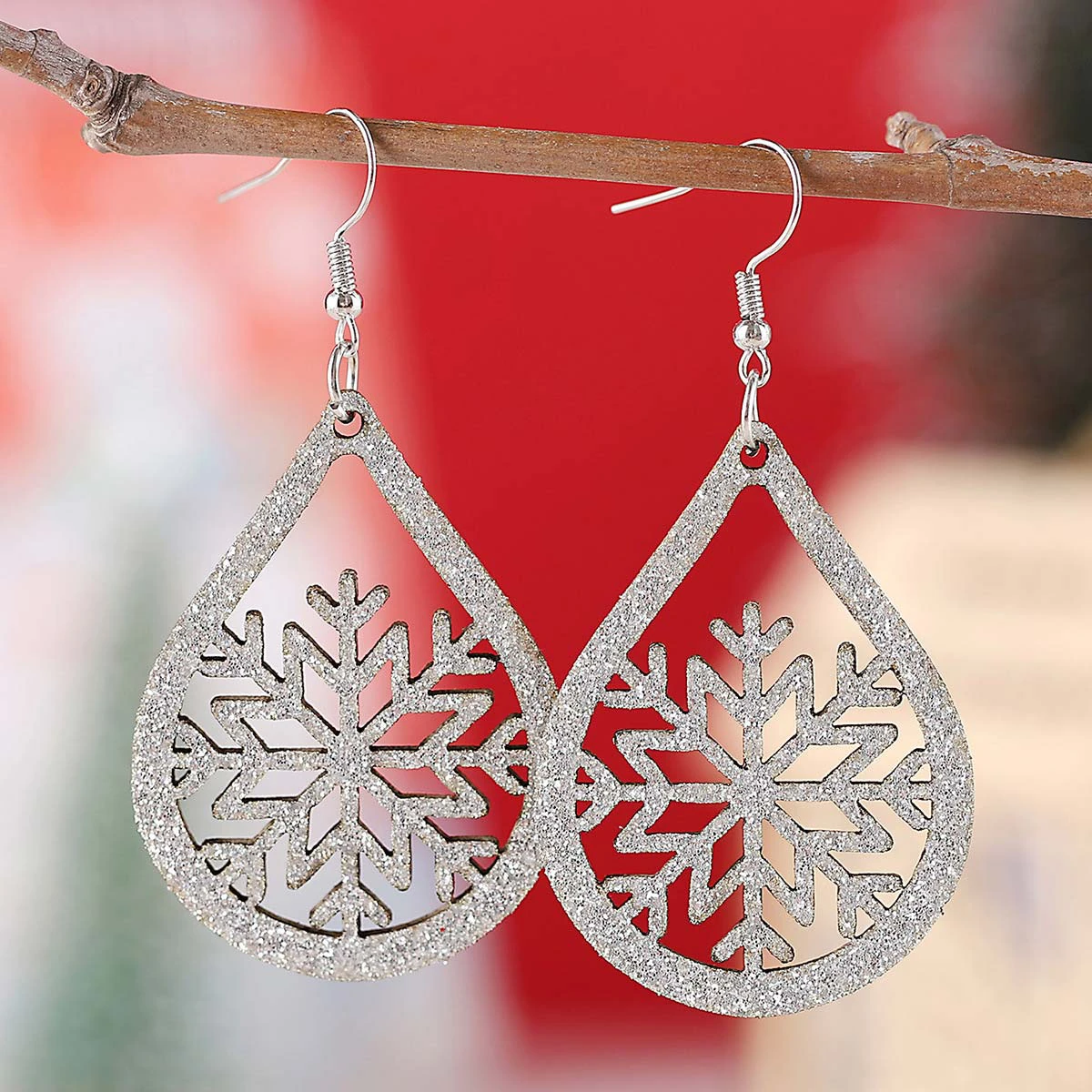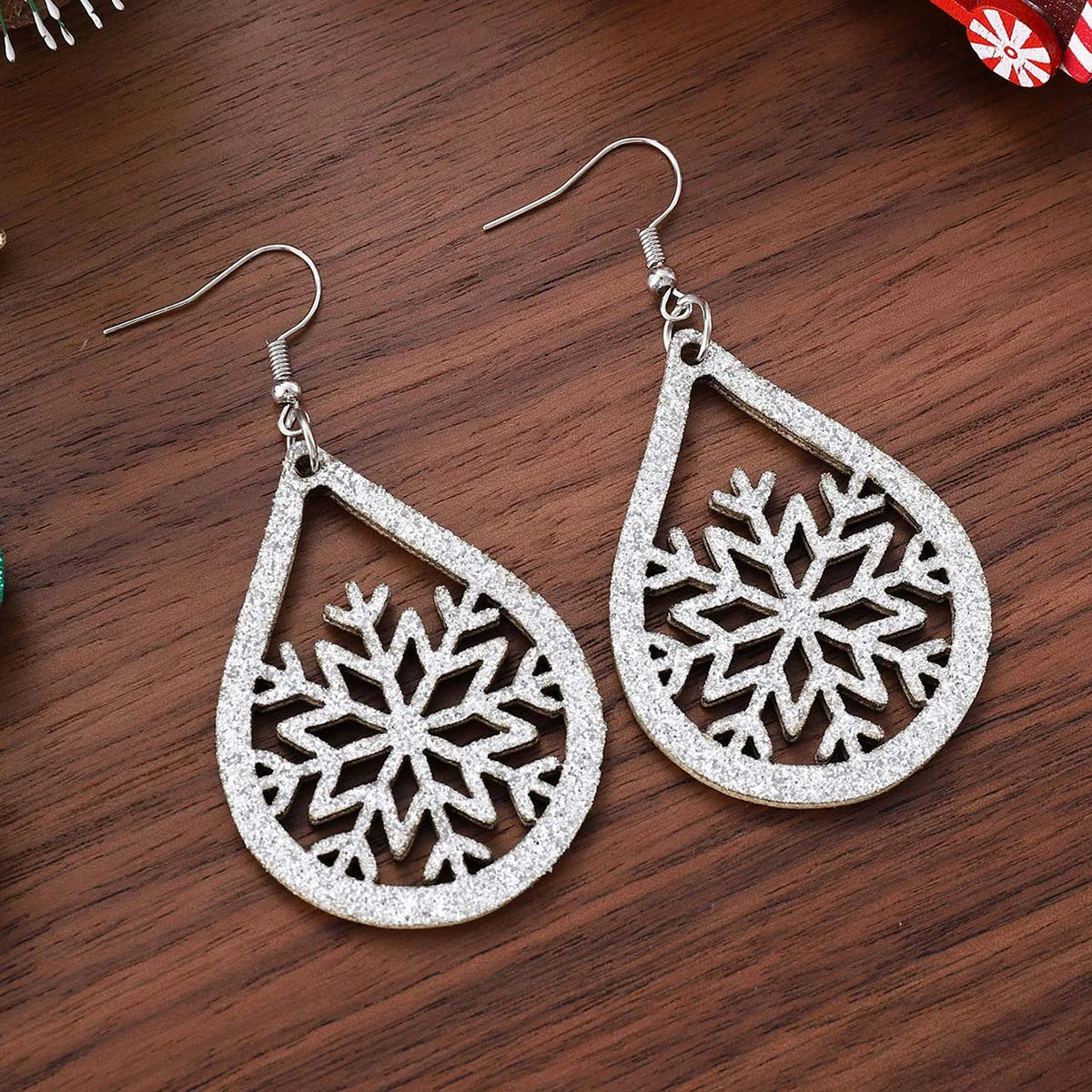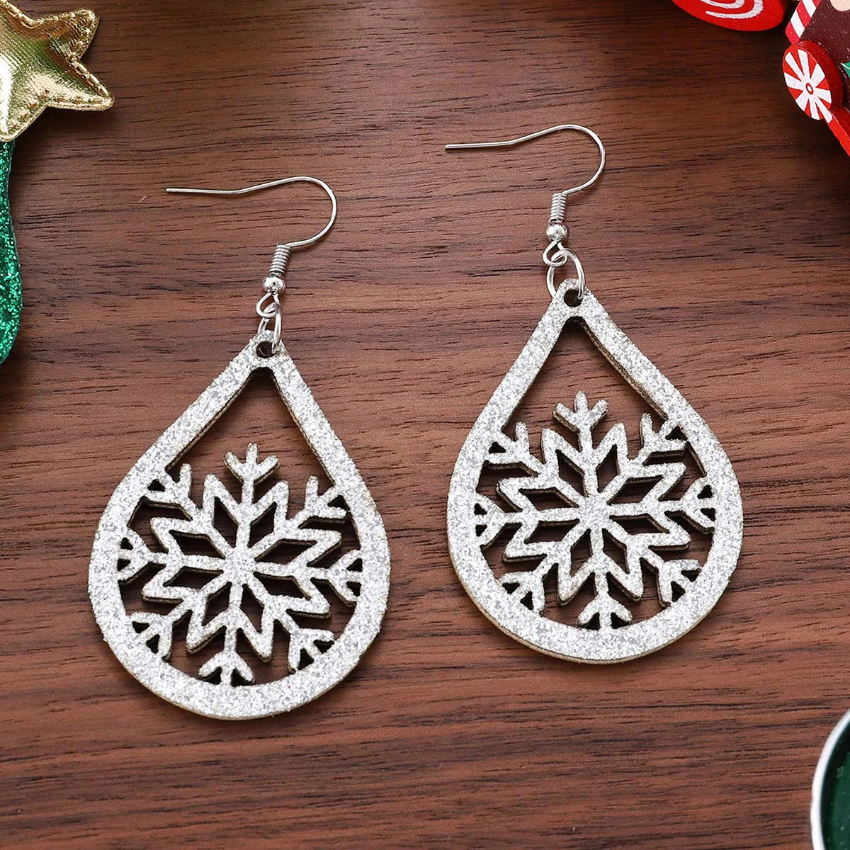 Home > Jewelry > Earrings/ Christmas Snowflake Silver Faux Leather Earrings