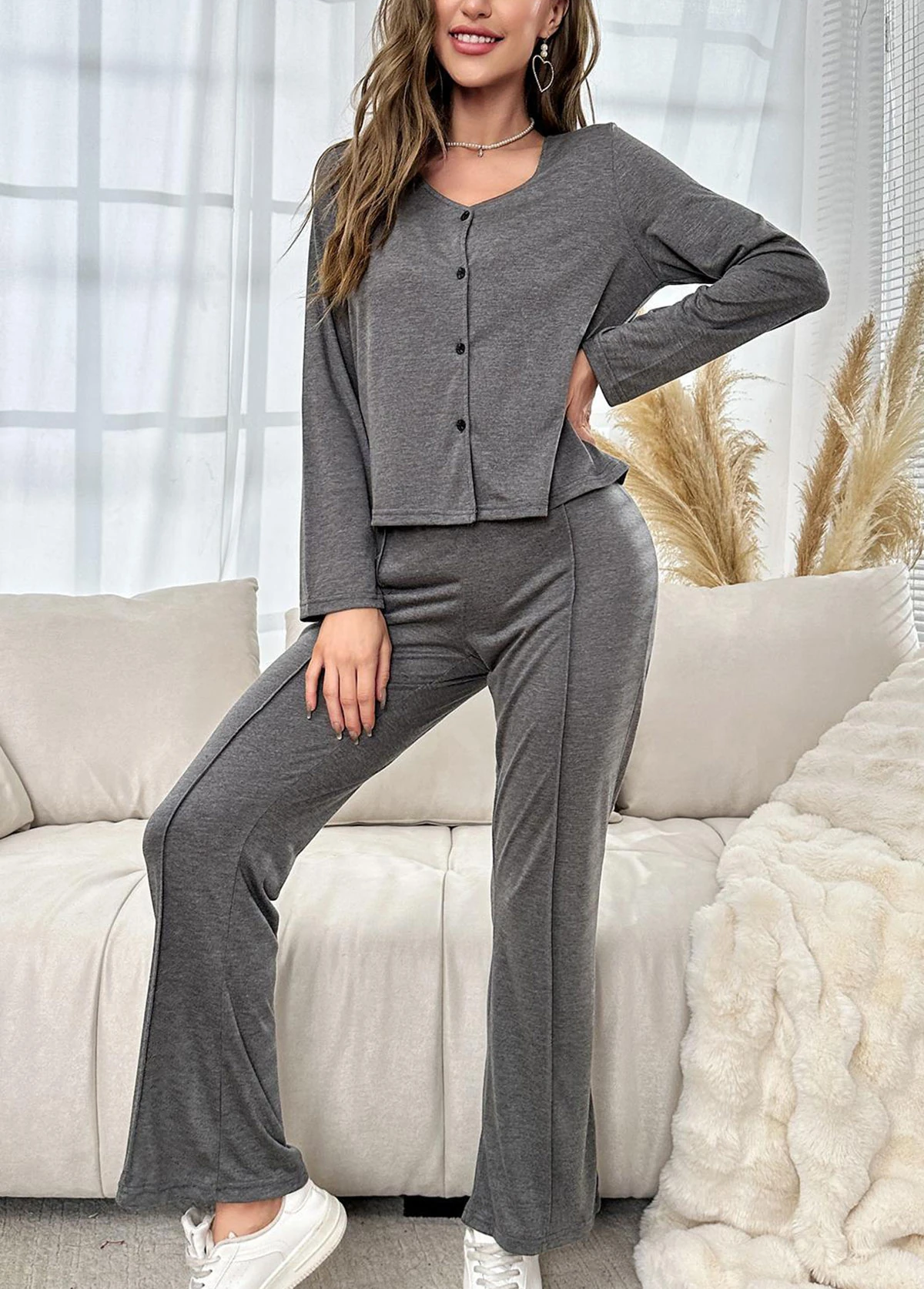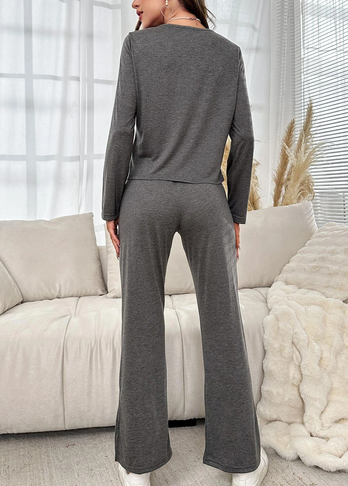 Home > Loungewear > Loungewear Sets/ Dark Grey V Neck Lounge Top and Pants