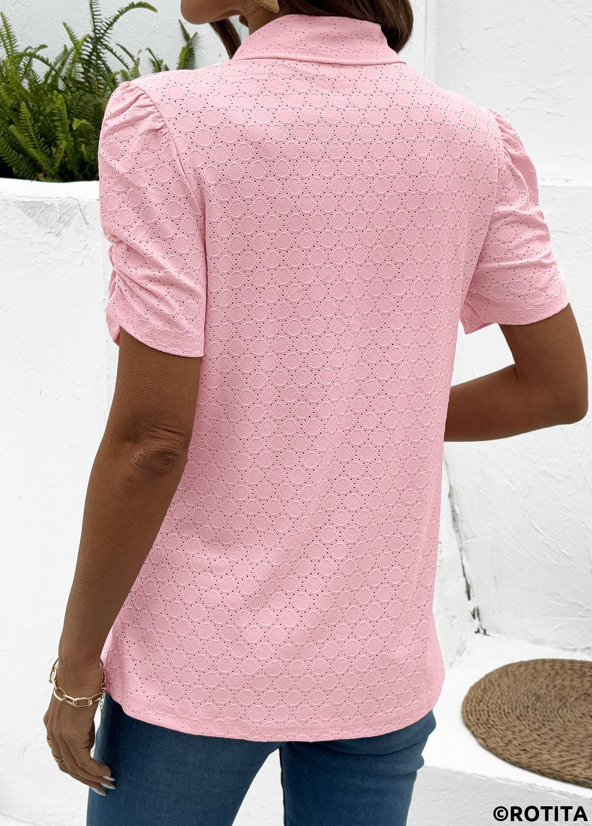 Heim > Oberteile > Blusen/ Rotita-Bluse mit Bauchbedeckung rosa Kurzarmbluse mit Umlegekragen.