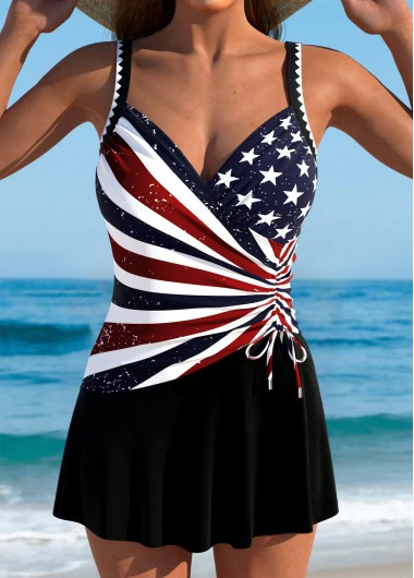 Heim > Bademode > Einteilige Badebekleidung/ Rotita – Mehrfarbiges einteiliges Badekleid mit amerikanischer Flagge