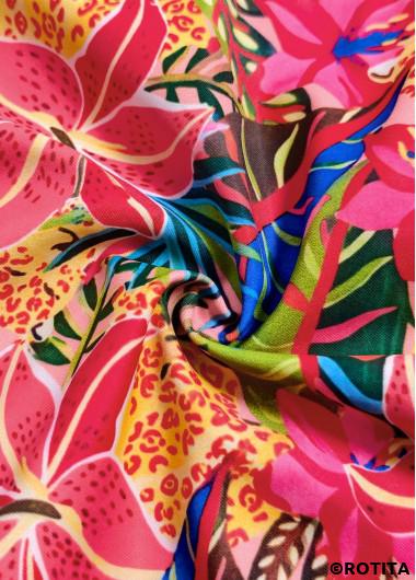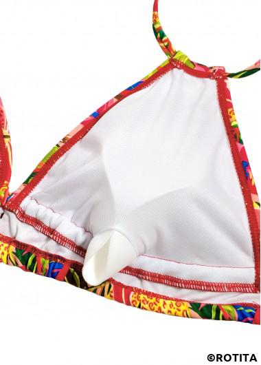Rotita – Rosa Bikini-Set mit mittelhohem Bund und tropischem Pflanzenmuster