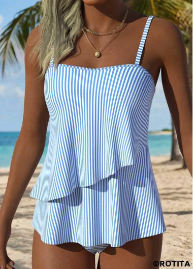 Heim > Bademode > Tankinis > Tankini-Sets/ Rotita hellblaues gestreiftes Tankini-Set mit mittelhohem Bund