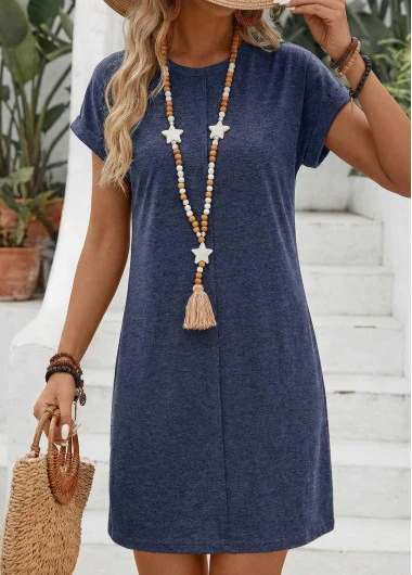 kurzes marineblaues Kleid mit Abnähern und Rundhalsausschnitt von Rotita