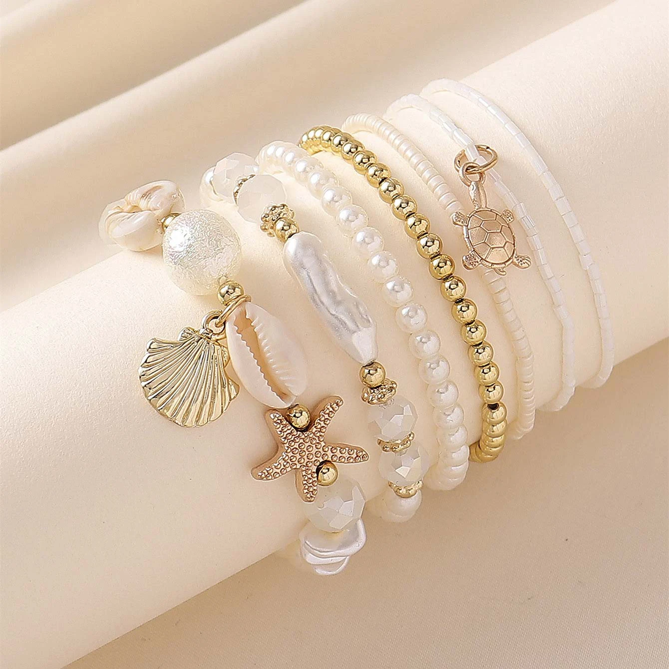 Neu in Armbänder mit weihnachtlichen Muscheln beige Acryldetails