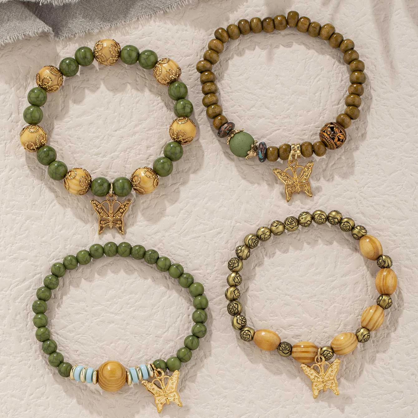 Schmetterlingsarmband-Set aus olivgrüner Legierung