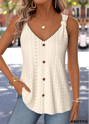 Heim > Oberteile > Tanktops und Camis/ Rotita Tie beiges ärmelloses Tanktop mit V-Ausschnitt