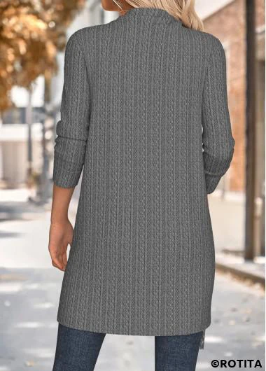 Heim > Oberteile > Oberbekleidung & mäntel > Mäntel/ Rotita – Grauer Mantel mit drapiertem Hals und langen Ärmeln zur Bauchbedeckung