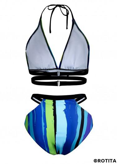 > Bademode > Bikinis > Bikini-Sets/ Gestreiftes Neckholder-Bikiniset Rotita mit mittlerer Taille