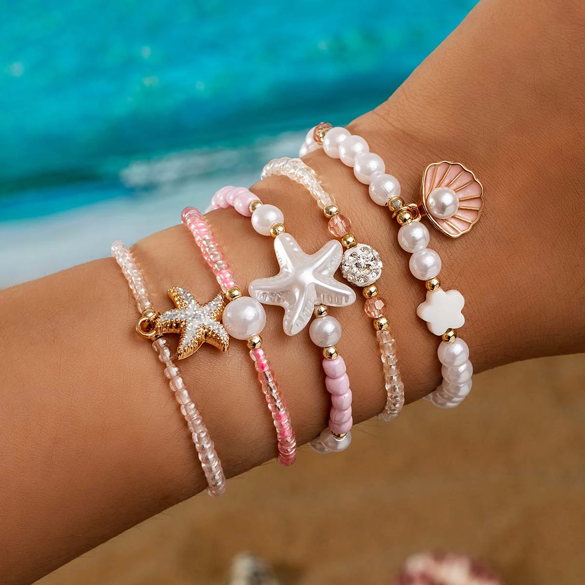 Set aus Armbändern mit rosafarbenen Saatperlen