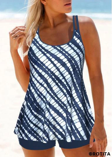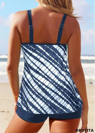 Heim > Bademode > Tankinis > Tankini-Sets/ Rotita-Patchwork-Tankini-Set in staubblauem Batikmuster
