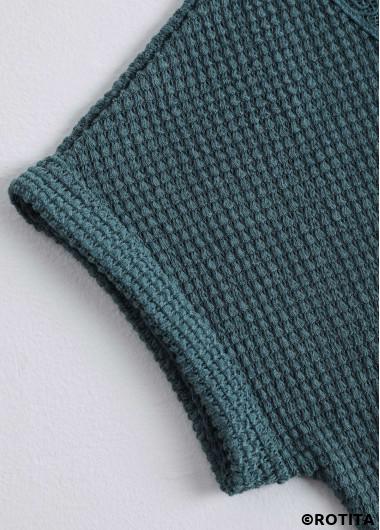 Blitzangebot Blaues Rotita-Patchwork-T-Shirt mit Rundhalsausschnitt und kurzen Ärmeln