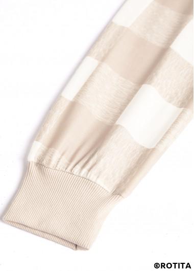 Heim > Übergröße > Plus-Size-Tops/ Rotita – Sweatshirt mit Patchwork und Umlegekragen in Beige
