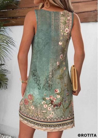 Neu in kurzes ärmelloses Kleid von Rotita in Salbeigrün mit Blumenmuster und Bauchbedeckung