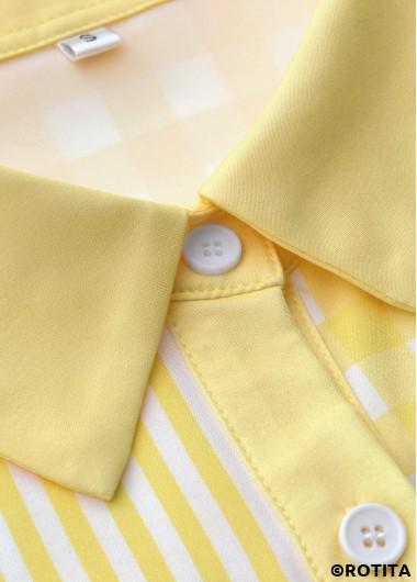 Heim > Oberteile > Hemden/ Rotita Patchwork gestreiftes hellgelbes Langarmhemd