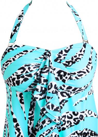 Heim > Bademode > Tankinis > Tankini-Sets/ Rotita – Tankini-Set mit Rüschen und Animalprint in Cyan