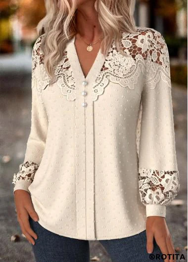 Heim > Oberteile > Hemden/ Rotita-Bluse mit Bauchbedeckung beigefarbenem V-Ausschnitt und langen Ärmeln