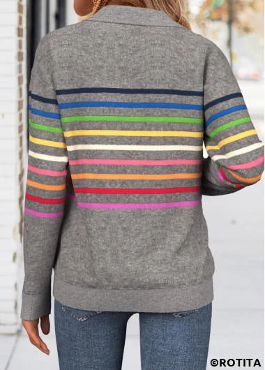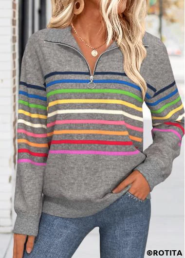 Heim > Oberteile > Sweatshirts & Hoodies/ Rotita Sweatshirt mit Bauchbedeckung mehrfarbigem Streifenmuster und dunkelgrauem Print