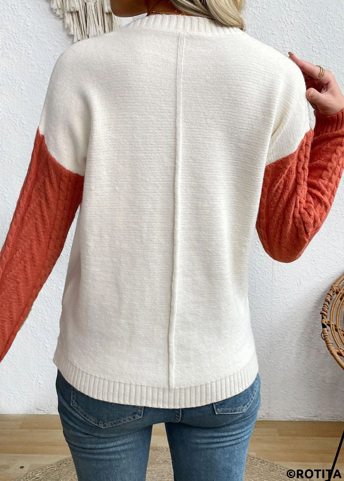 Heim > Oberteile > Pullover/ Patchwork-Pullover mit Rundhalsausschnitt und langen Ärmeln in mehreren Farben
