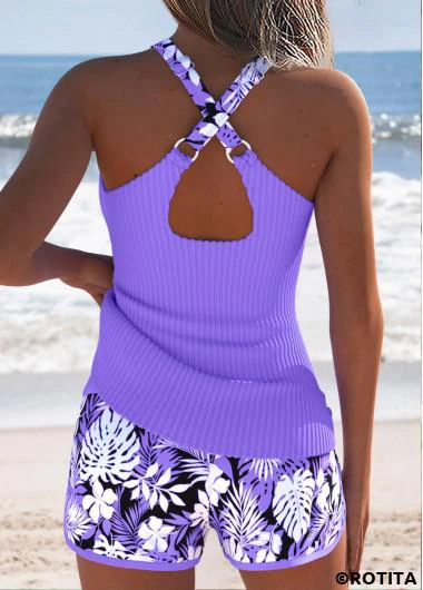 Heim > Bademode > Tankinis > Tankini-Sets/ Rotita Tankini-Set mit Bauchbedeckung lila Blumenmuster