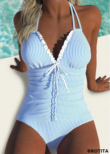 Heim > Bademode > Tankinis > Tankini-Sets/ Rotita – Hellblau gestreiftes Tankini-Set mit mittlerer Taille