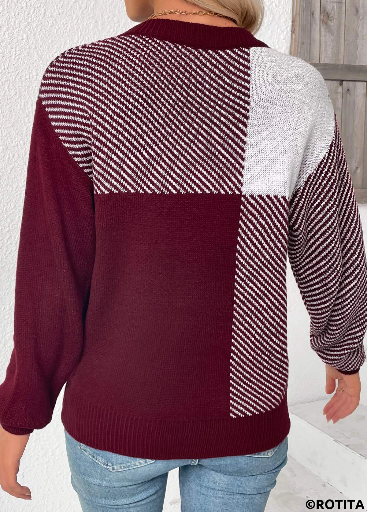 Heim > Oberteile > Pullover/ Bauchbedeckender gestreifter dunkelroter Rundhalspullover