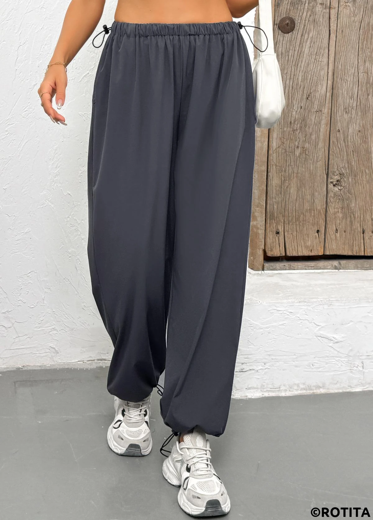 Heim > Unterteile > Hose/ dunkelgraue Jogginghose mit Taschen und elastischem Bund hochgeschnitten