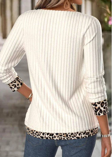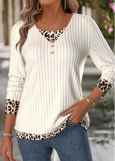 Heim > Oberteile > T-Shirts/ Rotita – Langärmliges T-Shirt mit V-Ausschnitt und Leopardenmuster in Beige