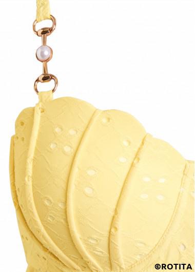 Rotita – Bandeau-Tankini-Set in Gelb mit Jacquard-Detail