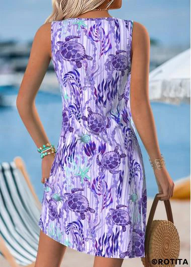 Heim > Kleider/ kurzes Kleid mit Rotita-Bauchbedeckung und Meeresmotiven-Print in Helllila
