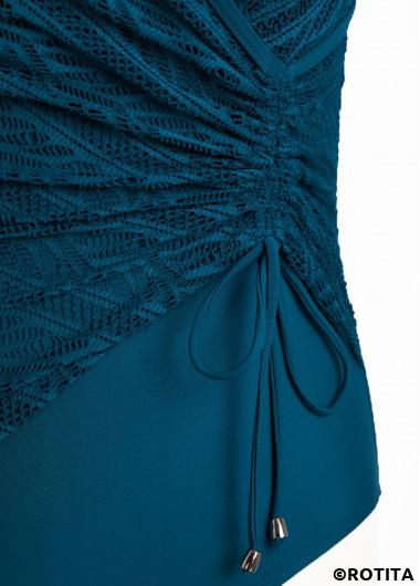 Heim > Bademode > Einteilige Badebekleidung/ Einteiliger Badeanzug mit Pfauenblau und Rotita-Stickerei