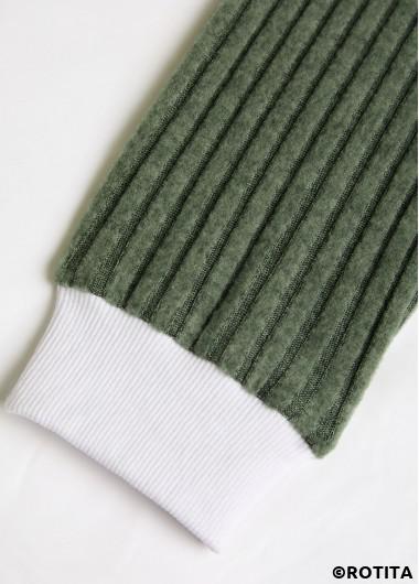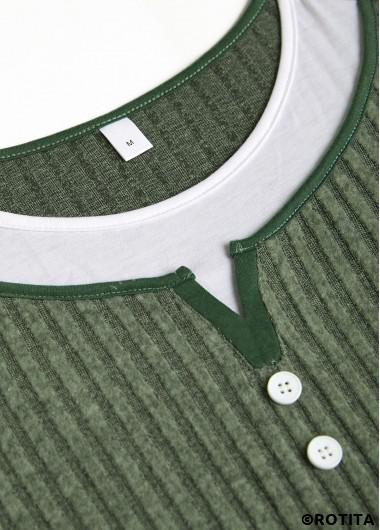 Heim > Oberteile > T-Shirts/ Olivgrünes T-Shirt mit Rundhalsausschnitt und langen Ärmeln und Rotita-Knopf