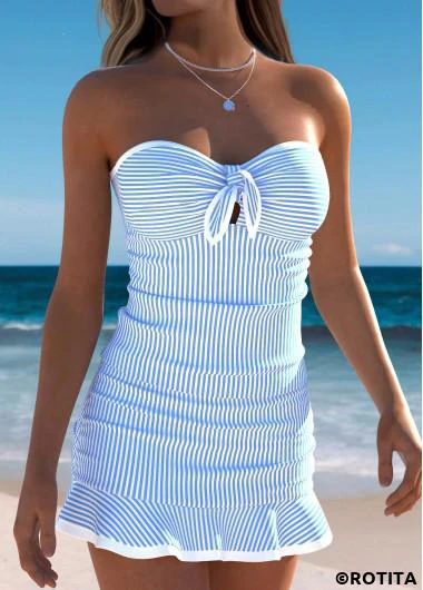 Rotita hellblaues Tankini-Set mit Schleifenstreifen und mittelhohem Bund