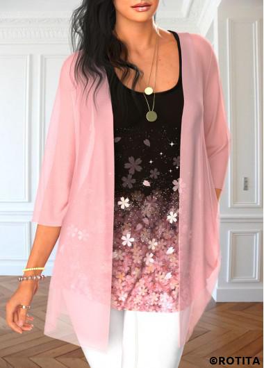 Heim > Oberteile > zweiteiliges Twinset/ Hellrosa Strickjacke und Tanktop mit Rotita-Blumendruck