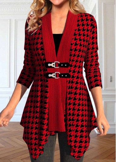 Heim > Oberteile > Oberbekleidung & mäntel > Mäntel/ Rotita-Patchwork-Karo-Mantel in Weinrot mit Umlegekragen