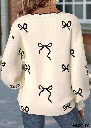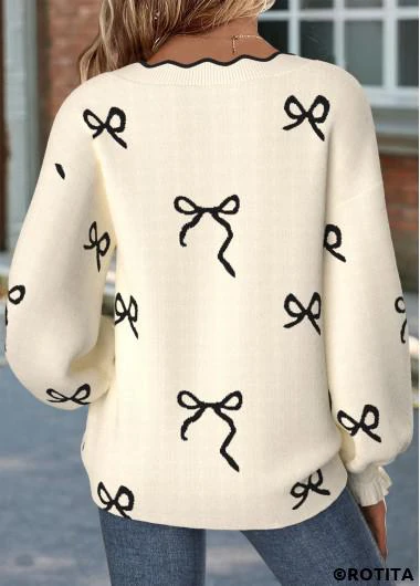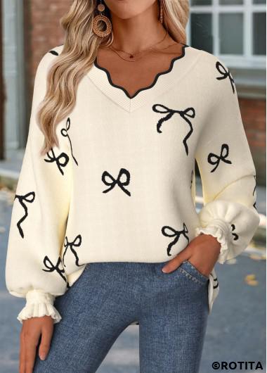 Neu in Rotita – Beiges Sweatshirt mit V-Ausschnitt und abgerundetem Saum und langen Ärmeln