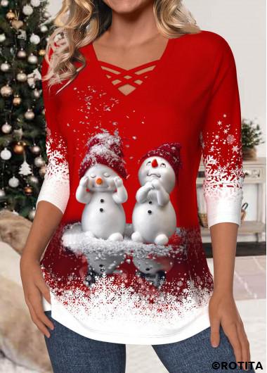 Verkauf Rotita – Weihnachts-T-Shirt mit überkreuztem V-Ausschnitt in Rot