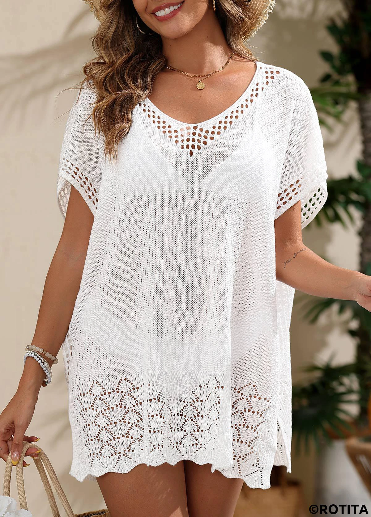 Heim > Bademode > Vertuschungen/ geteilter weißer V-Ausschnitt-Überwurf